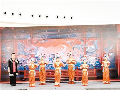 與孔淑瑩合唱的是郾城區龍湖學校非遺社團的孩子們,從今年4月份開始排練。8歲的表演者張議文說:“我很喜歡唱戲,能在這里為大家表演特別開心。”