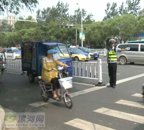 漯河市交警支隊(duì)交通秩序管理示范大隊(duì)交警李林鵬:我和同事張龍江巡邏到淞江路泰山路口,因?yàn)樘┥娇谑茄由鞃?,沒(méi)有設(shè)立崗?fù)?,?dāng)時(shí)過(guò)來(lái)的時(shí)候已經(jīng)停電了,所以紅綠燈不能用。