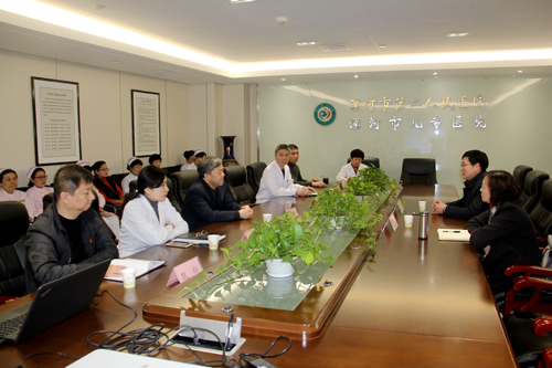 市二院胡洪良院長代表醫院對專家們的到來表示歡迎,同時也對醫院承擔漯河市兒童醫學 中心建設情況進行了介紹,并對中心建設中在醫教研等方面發展需要解決的問題進行了分 析,希望能借助河南省兒童醫院的專家、技術、教學、科研等資源,提升市二院兒科醫療 服務水平及學科建設水平。副院長郭長根對醫院兒科現狀及發展規劃進行了匯報。河南省 兒童醫院內科大主任金志鵬對該院門診及住院環境改善和兒科現有成就給予了充分肯定, 并表示河南省兒童醫院將與該院兒科進行深度合作:除了派駐專家進行指導外,還將在人 才培養、學科建設、學術交流、遠程醫療、雙向轉診等方面拿出多項舉措,切實提升該院 兒科整體水平,為漯河乃至周邊地區兒童提供較為全面的優質醫療服務。