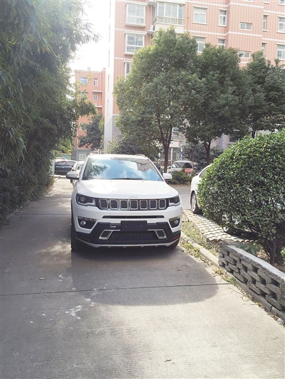 王女士告訴記者,她在市區遼河路一個小區居住,4月19日下午,她有急事開車出去,將車開出停車位后,發現小區道路旁有一輛車。“因為我的車是越野車比較大,害怕剮蹭到那輛停在路旁的車,所以就準備走緊急通道出去。”王女士說,當走到小區緊急通道的時候,發現有一輛車停在緊急通道處。(如圖)