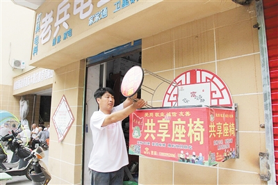 從共享單車到共享電車,再到現(xiàn)在的共享汽車。共享已經(jīng)成為當今一個比較熱門的詞語。近日,在市區(qū)湘江路一小家電維修店門前,有一處免費的“共享座椅”吸引了不少人的注意。