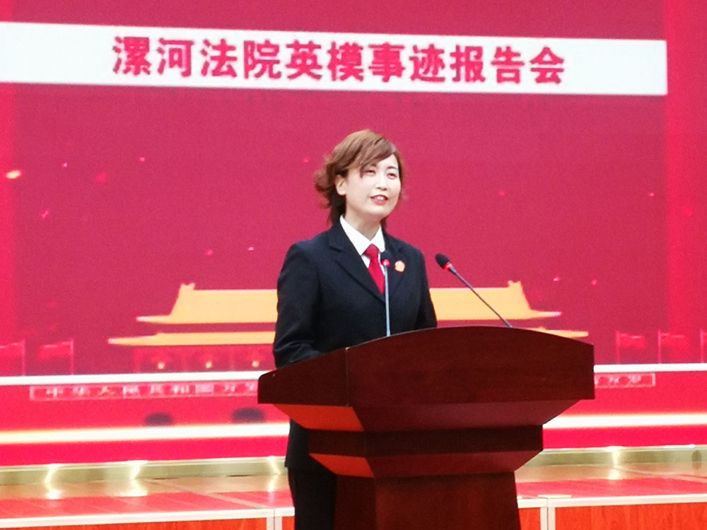 報告會現場,扎根基層用腳步丈量公平、當事人勝敗皆服的張嘯飛,連續多年辦案數量和質效全市法院位居前列的許鳳梅,以工匠精神鉆研審判業務、秉持悲憫情懷化解矛盾糾紛的左昊,翻天山穿戈壁為祖國西北提供法律援助的援疆干部張靜怡等八名英模,用鮮活的事例、質樸的語言、真摯的感情,深情講述了自己或身邊人在各自崗位上不忘初心、敬業奉獻、一心為民的感人事跡。漯河中院黨組書記、院長陳松林與院領導班子及全體干警共同聆聽,經歷了一次震撼人心的精神洗禮。