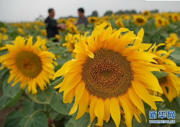 8月12日,在尚義縣三工地鎮(zhèn)有德元村,農(nóng)民在田間管護旱作油葵。 近年來,地處壩上地區(qū)的河北省尚義縣大力實施地下水超采綜合治理,積極探索旱作雨養(yǎng)種植技術(shù),發(fā)展馬鈴薯、莜麥和油葵等旱地農(nóng)作物,促進生態(tài)環(huán)境恢復(fù)。據(jù)介紹,該縣2019年以來,先后關(guān)停灌溉用井1200余眼,旱地改草23萬畝,水澆地改旱地11萬畝。 新華社記者 楊世堯 攝