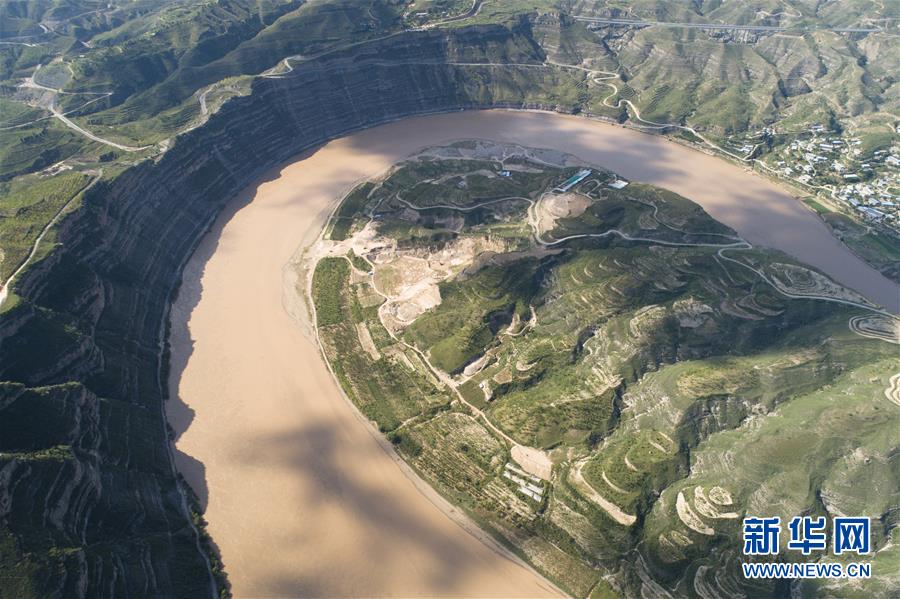 陜西延川縣黃河盤龍灣景色(9月10日攝,無人機照片)。