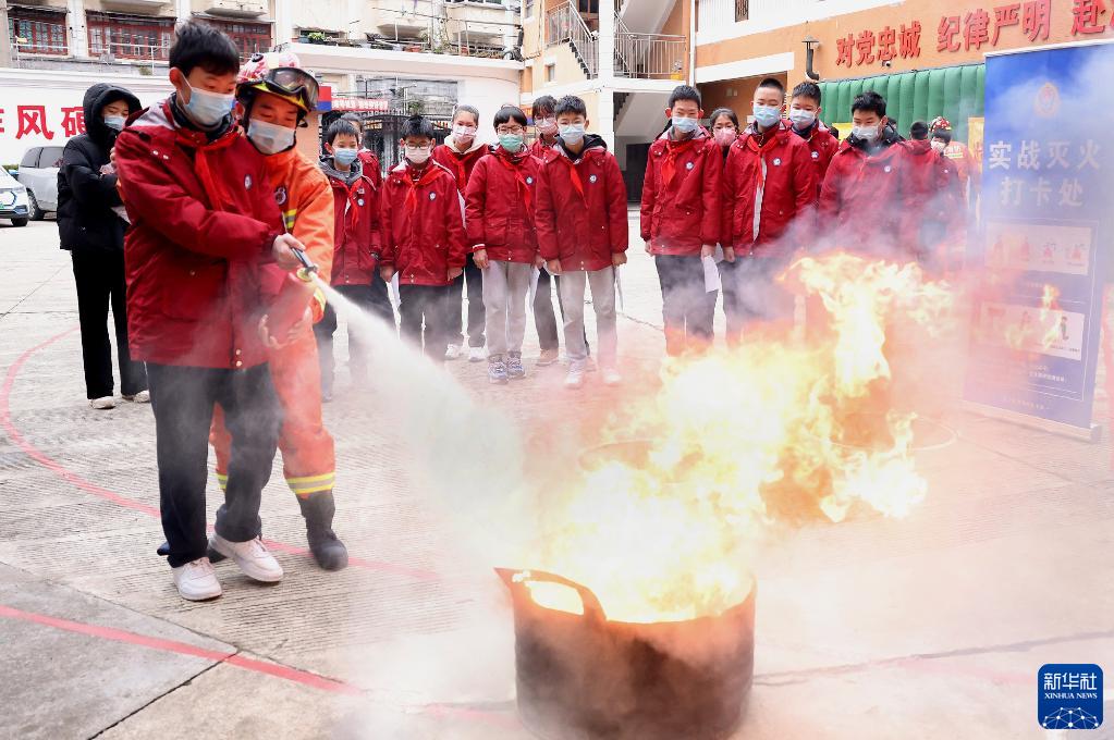 2月17日是上海市中小學(xué)開學(xué)首日,上海市虹口區(qū)消防救援支隊(duì)在虹口消防站舉行“一日消防員”體驗(yàn)活動(dòng)。這是初中生在消防員的指導(dǎo)下學(xué)習(xí)使用干粉滅火器。