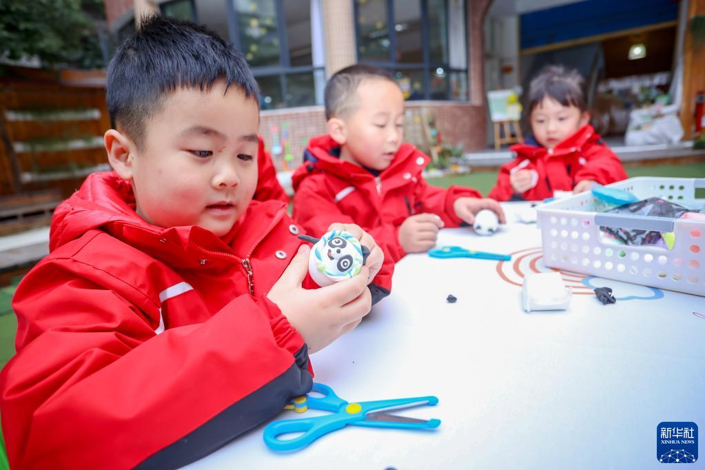 2月17日,四川省遂寧市順城街幼兒園開展“萌娃慶冬奧 我來(lái)捏冰墩墩”開學(xué)第一課主題活動(dòng)。